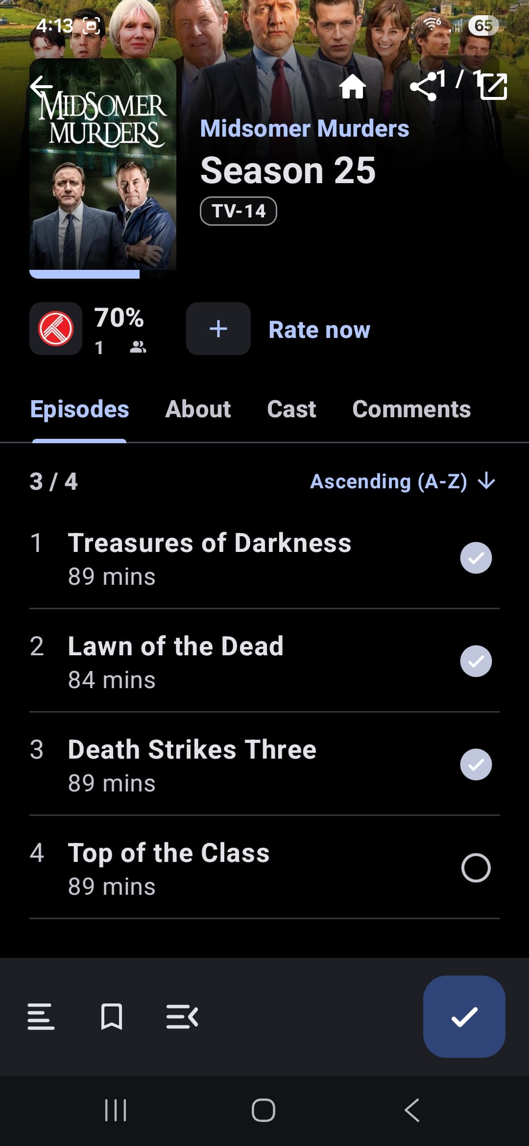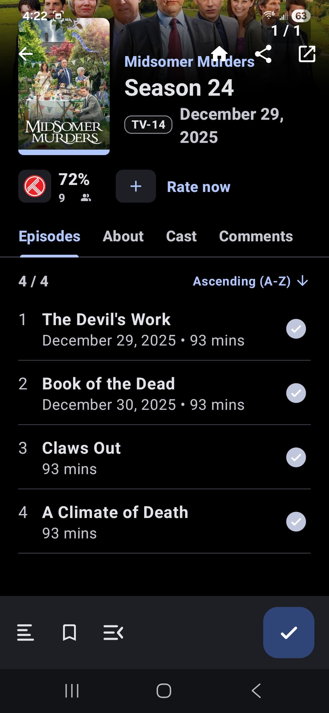 TMDb administrators insist that, once they assign an originating network to a show, it doesn’t matter where episodes are airing first now, the only episode “debut” that counts for assigning an episode air date is the first airing on their assigned network. For a show like “Midsomer Murders”, this means an episode airs on Acorn months before it airs on ITV, but no episode air date is assigned until it airs on ITV. I often watch such episodes long before they air on ITV. As it should, Moviebase lets us mark such episodes as watched when we actually watch them, even though they don’t yet have an assigned air date in TMDb.