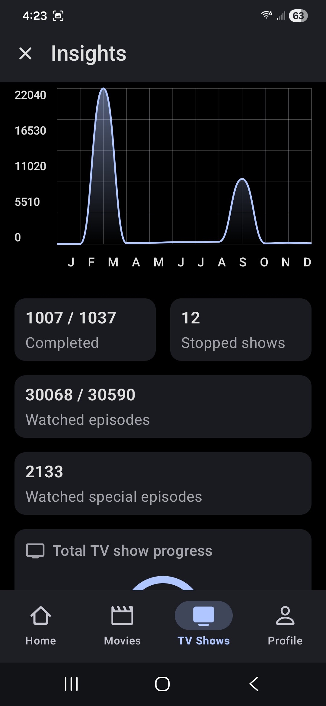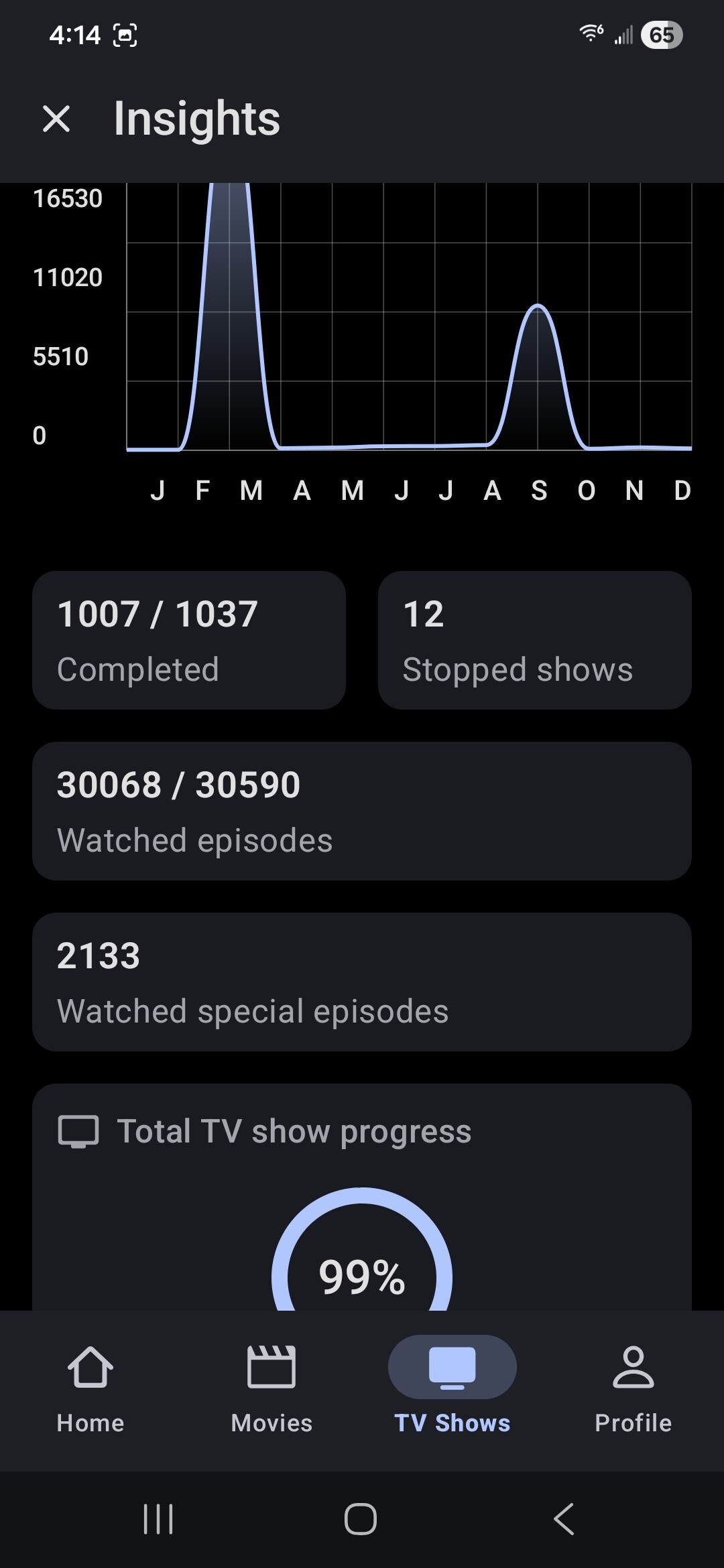 However, when we do mark such an episode watched, it is not counted in that overall progress count on the statistics page. That somewhat makes sense because such episodes are not yet reflected in the total episodes to be watched count due to their not showing an air date yet. I could accept this behavior except that when the episode is actually assigned an air date, it doesn’t appear that either of those counts is updated when I already have it marked as watched. Also, once that episode receives an official air date, it doesn’t matter if I un-mark the episode as watched or re-mark it as watched, neither of these counts change. That’s a problem. Note that the episodes are counted in the overall count of episodes watched that appears elsewhere in on the statistics page.