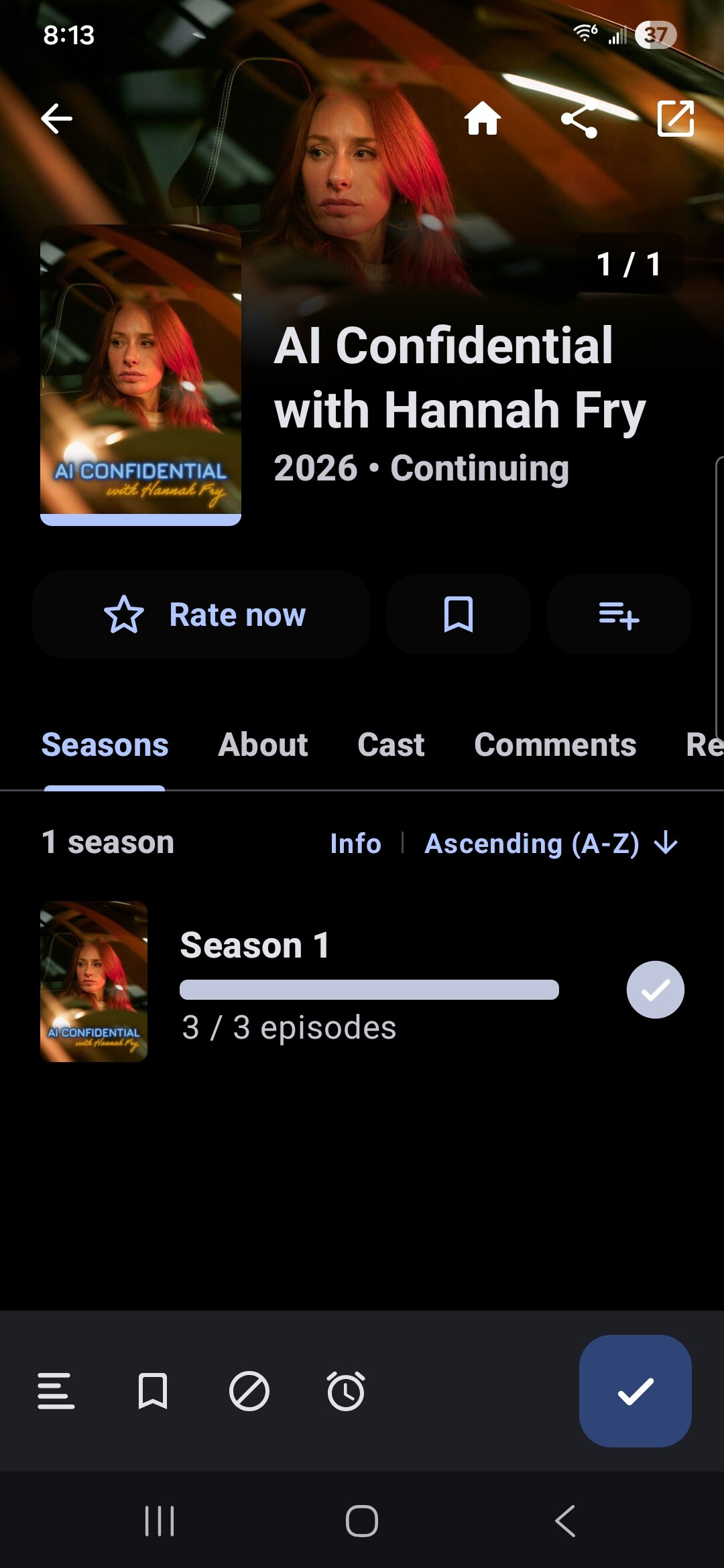 I watched all 3 episode of AI Confidential days ago and marked them on Device #1. Device # 2 shows that I have started watching the show and have added it to a personal list, but the watched episodes are not marked as watched on Device #2.